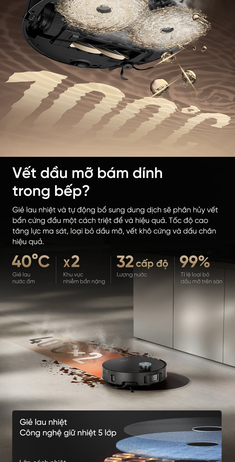 - Tự động giặt giẻ với nước nóng: Có, (Công nghệ tự giặt giẻ lau ThermoHub™ 100°C)
