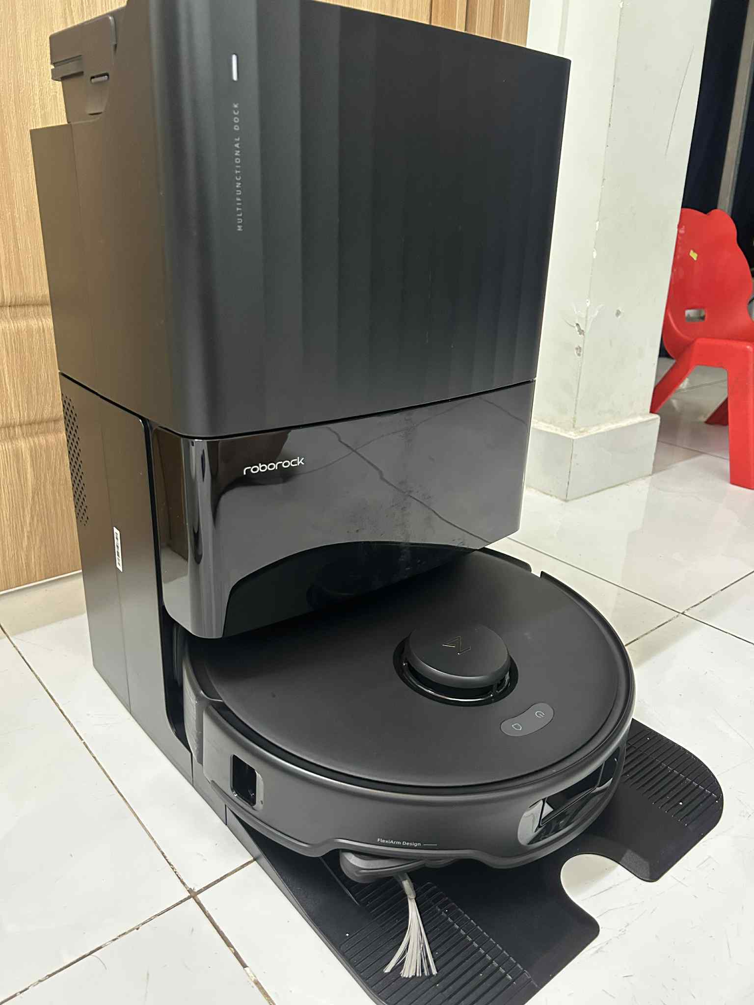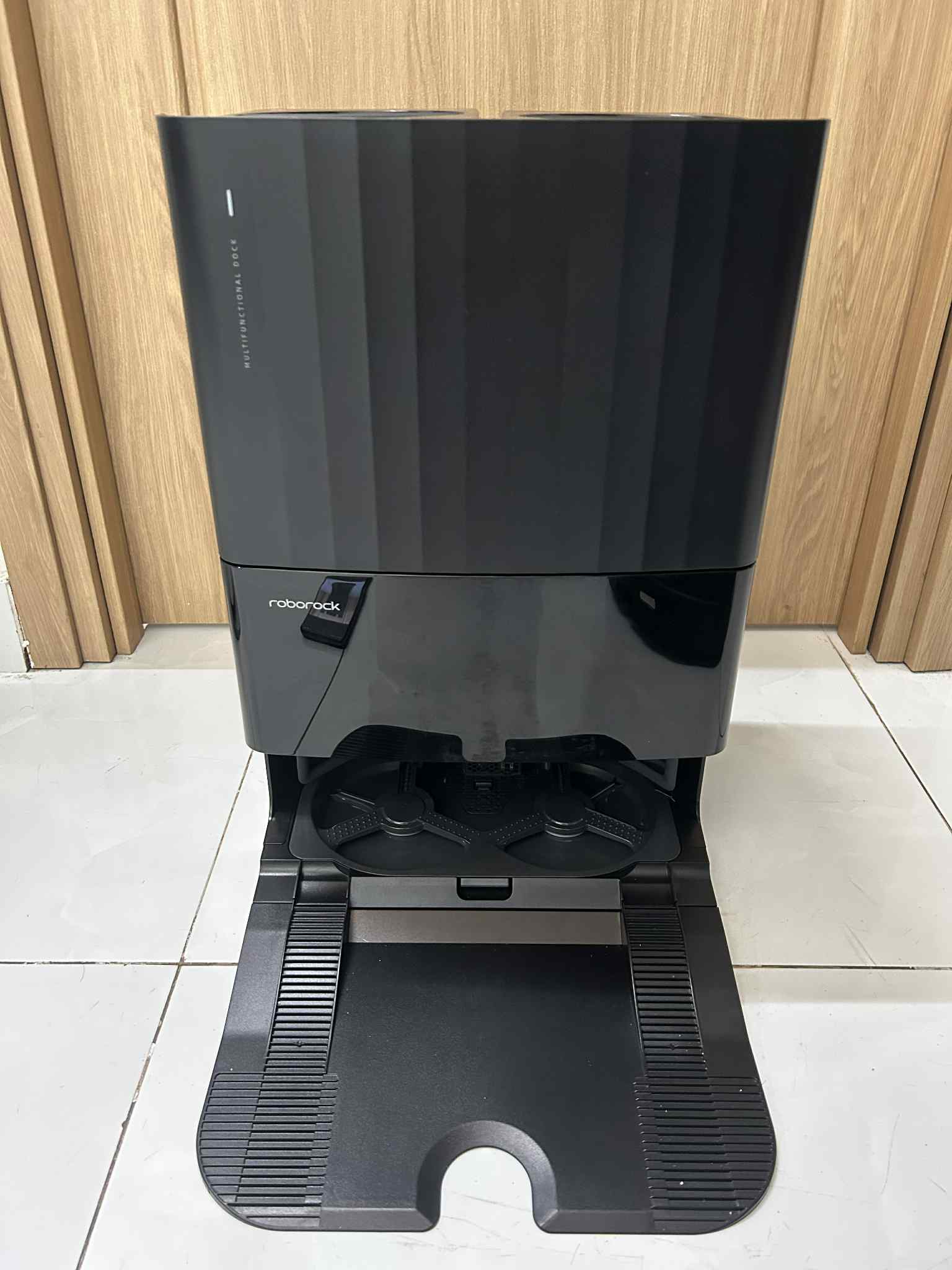 Để khắc phục giới hạn dung tích khoang chứa trên thân máy, Roborock đã trang bị cho sản phẩm này một trạm sạc thông minh đa năng. Trạm được trang bị bình chứa nước sạch dung tích 4 lít và bình chứa nước bẩn 3.5 lít, cho phép robot tự động lấy nước để lau sàn và xả nước bẩn sau khi hoàn thành. Đặc biệt, giẻ lau còn được giặt và sấy khô tự động, giúp hạn chế mùi hôi và vi khuẩn, đồng thời duy trì hiệu quả lau sạch trong thời gian dài. Ngoài ra, trạm sạc cũng có khả năng tự động gom bụi từ robot vào túi chứa, giúp người dùng không cần phải đổ rác thường xuyên, nâng cao tính tiện lợi trong quá trình sử dụng.